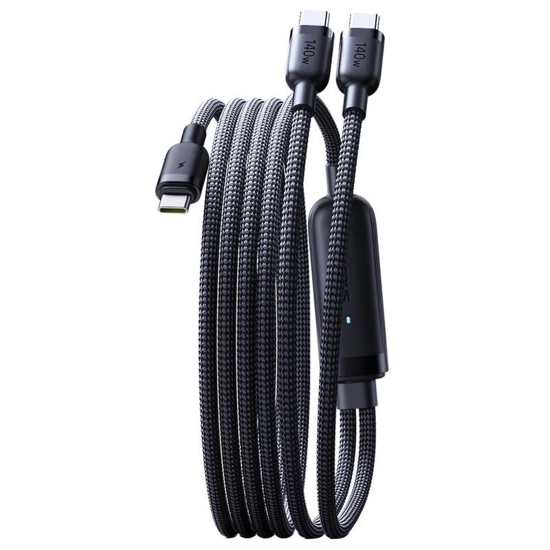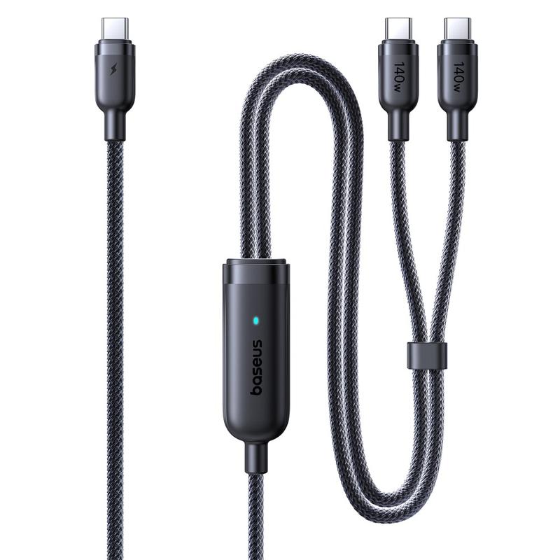 • Baseus Flash 4 2-in-1 USB-C naar dubbele USB-C snellaadkabel 1,5 m - PD 3.1 140 W oplaadkabel voor meerdere apparaten met kabelhouder