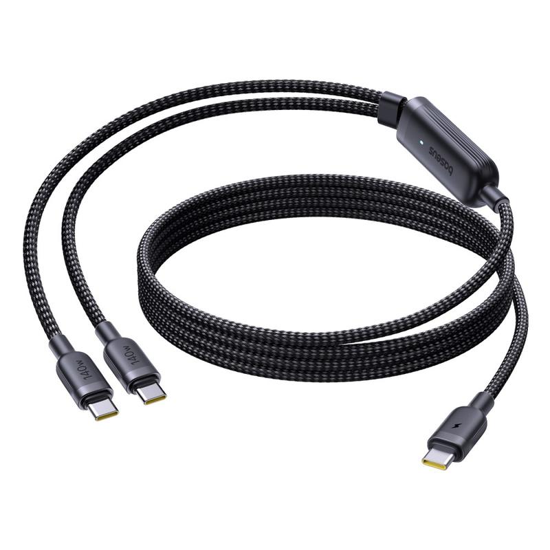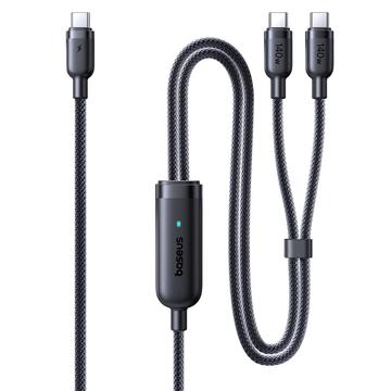 Baseus Flash 4 2-in-1 USB-C naar dubbele USB-C snellaadkabel 1.5m/140W - Zwart