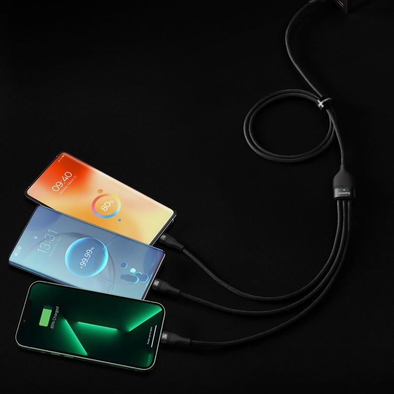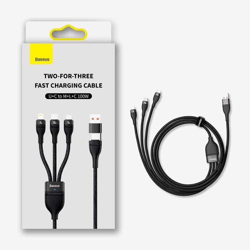 Baseus Flash Series II 100W 3-in-2 snellaadkabel - 1.2m - USB-A- en USB-C-ingang naar USB-C Lightning en Micro USB, nylon gevlochten