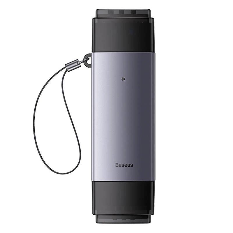 Baseus SD/TF geheugenkaartlezer, USB + USB-C (grijs)