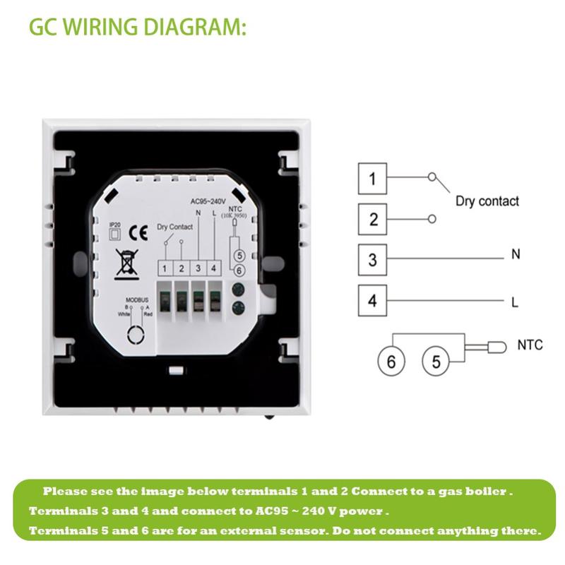 Deze thermostaat heeft een stijlvolle frameloze voorkant met een 3,0-inch LCD-scherm en een 2,5D gebogen rand voor een strakke, moderne uitstraling. Verborgen capacitieve aanraakknoppen zorgen voor een minimalistische look en maken de bediening eenvoudig en intuïtief. Dankzij het meerkleurige LED-scherm kunt u de instellingen en de omstandigheden in de kamer in één oogopslag controleren.