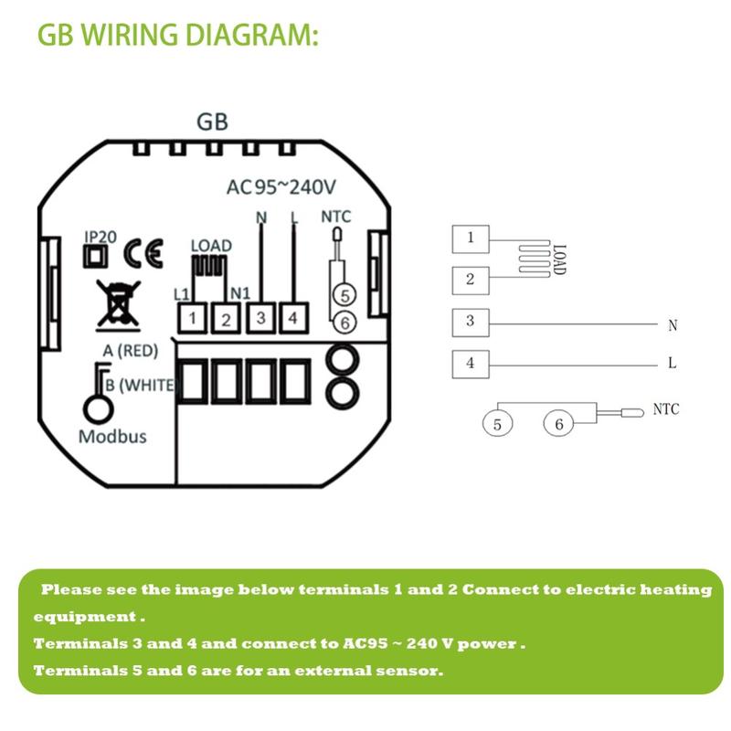 Deze thermostaat is gemaakt van duurzaam, vlamvertragend PC+ABS-materiaal en ontworpen voor langdurige prestaties en stabiele werking. Dankzij de bescherming tegen stroomuitval blijven uw opgeslagen instellingen behouden, waardoor u het apparaat na onderbrekingen minder vaak opnieuw hoeft te configureren. Het inbouwformaat past in een standaard wanddoos van 86 x 86 mm of een conventionele Europese doos, waardoor het geschikt is voor een breed scala aan interieurs.