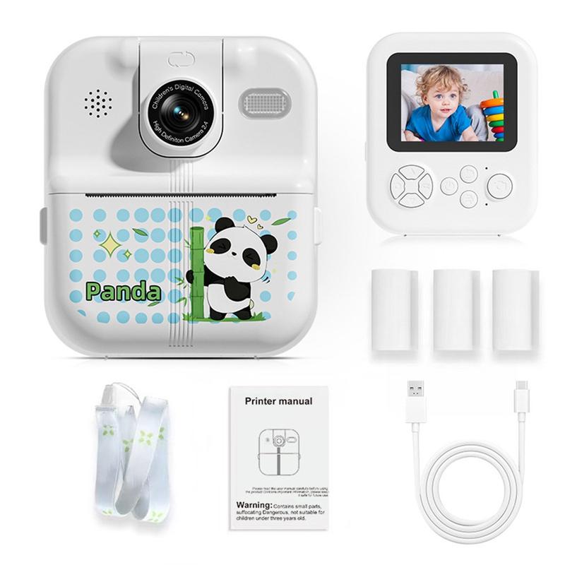 • Cartoon dierenontwerp P02 Instantcamera voor kinderen met 2,4-inch IPS-scherm en 180° draaibare lens - WalkPrint-app, USB-C, 1500 mAh, thermische fotoprinter