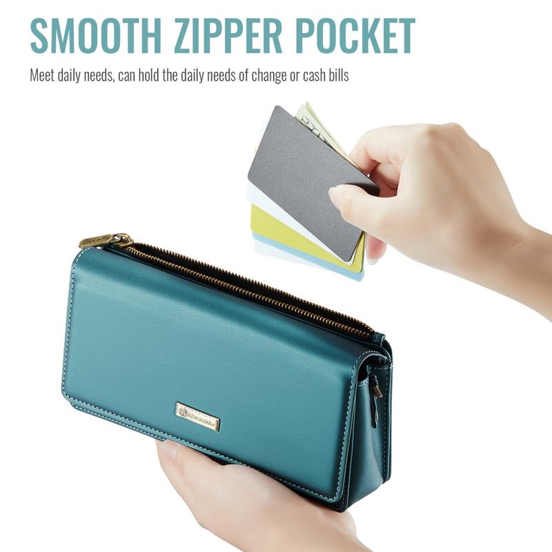 De Caseme Me30 is praktisch ontworpen en heeft 7 kaartsleuven, 1 rekeningvak, 1 vak met ritssluiting en een speciale fotohouder om al je spullen georganiseerd en gemakkelijk toegankelijk te houden. De compatibiliteit met smartphones van 4,0 tot 7,5 inch zorgt voor een perfecte pasvorm voor de meeste telefoons, waardoor het de ultieme alles-in-één oplossing is voor je dagelijkse behoeften.