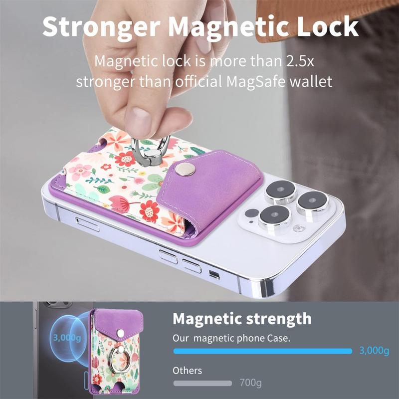 CaseNeo MC-W3 Magnetische Kaarthouder met Ringhouder - Gedessineerde Portemonnee Compatibel met MagSafe
