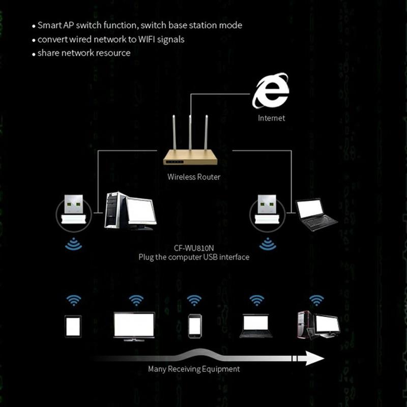 De COMFAST CF-WU810N biedt efficiëntie en veelzijdigheid in een ultracompact ontwerp. Zijn dual-band werking, multi-OS ondersteuning en eenvoudige USB setup maken het een ideale draadloze oplossing voor zowel thuis als op kantoor.