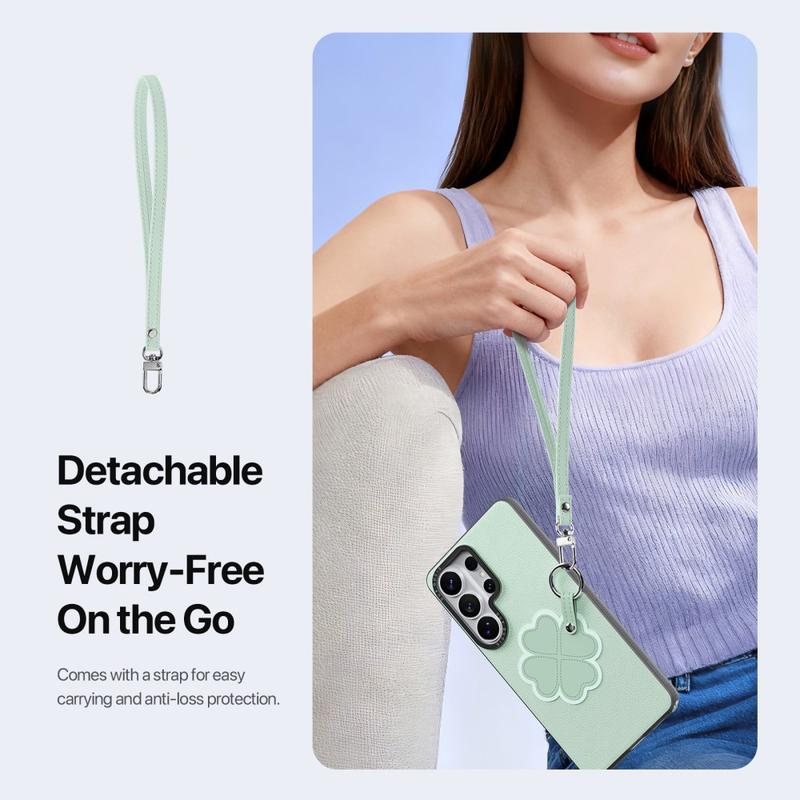 Er wordt een afneembare riem meegeleverd voor gemakkelijk dragen tijdens het reizen, woon-werkverkeer of dagelijkse activiteiten. Het biedt extra beveiliging tegen verlies en geeft je Samsung Galaxy S26 Ultra een modieus accessoire tintje.