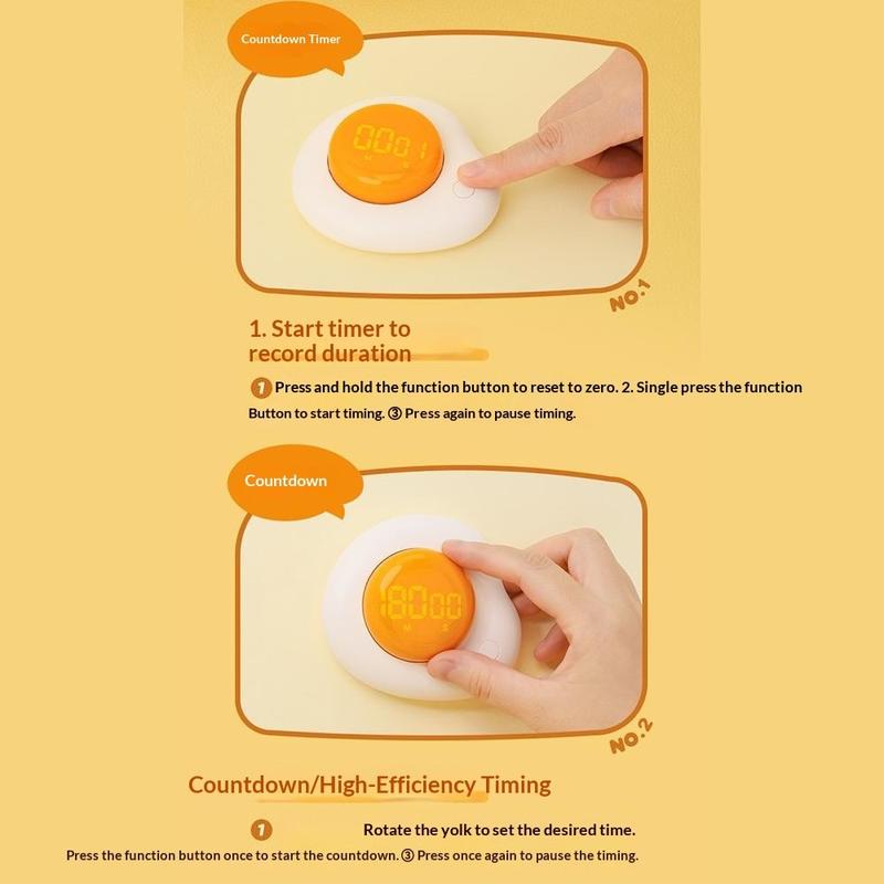 Maak timen in de keuken en daarbuiten gemakkelijker en leuker. Deze creatieve magnetische timer in de vorm van een ei heeft een duidelijk LED-display en zowel een opwaartse als neerwaartse telmodus, waardoor hij ideaal is voor koken, studeren of geconcentreerd werken. Met de eidooierknop kunt u snel en intuïtief de tijd instellen, terwijl u hem dankzij de magnetische achterkant op de koelkast, afzuigkap, metalen plank of whiteboard kunt plaatsen, zodat u hem altijd in het zicht hebt.