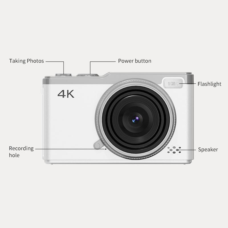 D72 draagbare digitale camera 4K - 2,4" CCD-camera met 16X zoom, autofocus, 180 graden kantelbaar scherm en 32GB kaart