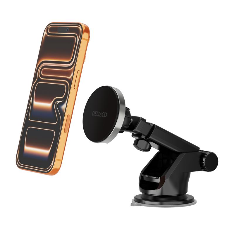 Houd je telefoon opgeladen en binnen handbereik tijdens het rijden met de afneembare draadloze autolader van Deltaco. Deze Qi2-compatibele lader is ontworpen met het oog op gebruiksgemak en flexibiliteit en biedt tot 15W draadloos opladen voor compatibele apparaten, terwijl je telefoon stevig op zijn plaats wordt gehouden door een ingebouwde magneet.
