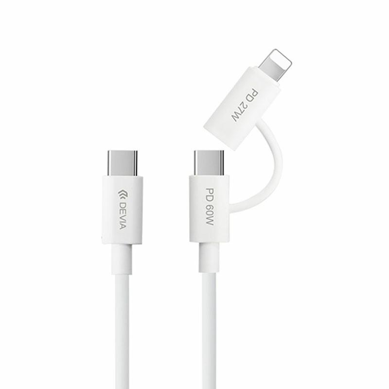 Devia EC404 Slimme 2-in-1 snellaad- en datakabel - USB-C naar USB-C PD 60 W en Lightning 27 W - 1.2m, 480 Mbps