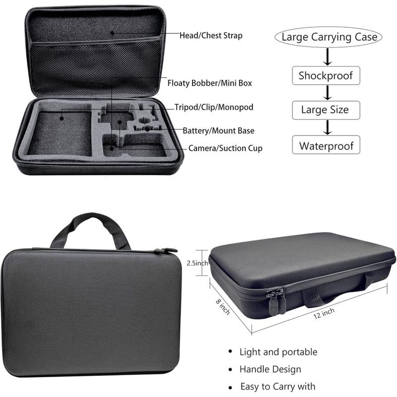Bereid je voor op elk avontuur met deze 55-in-1 camerabevestigingsset voor DJI Osmo Action 5 Pro, Action 4 en Action 3. De set bevat een waterdichte behuizing tot 60 meter voor duiken en watersporten, een set met meerdere kleurenfilters voor betere kleuren onder water en een breed scala aan bevestigingen en riemen voor fietsen, skiën, reizen en dagelijks filmen. Een schokbestendige draagtas met op maat gemaakte compartimenten houdt alles georganiseerd en klaar voor gebruik, of je nu op het land of onder water filmt.