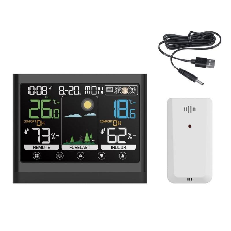- Weerklok met kleurentouchscreen, thermometer, hygrometer, weersvoorspelling en alarm