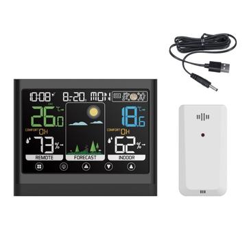 Draadloos weerstation met kleuren-touchscreen, thermometer, hygrometer en wekker