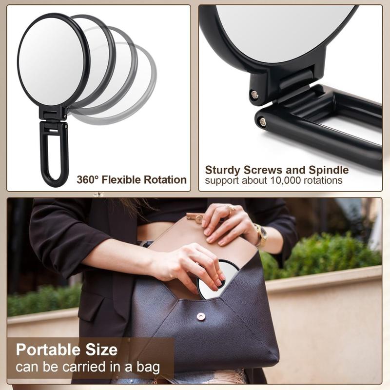 Zie elk detail wanneer het belangrijk is. Deze compacte, opvouwbare spiegel combineert een standaard spiegel met een 10x vergrotende spiegel voor precisiewerk. Het 360 graden draaibare handvat klikt vast zodat je hem in de hand kunt houden, aan een haak kunt hangen of op een tafel kunt zetten. De lichtgewicht en reisvriendelijke spiegel past gemakkelijk in je tas voor huidverzorging, make-up touch-ups of een snelle mondinspectie onderweg.