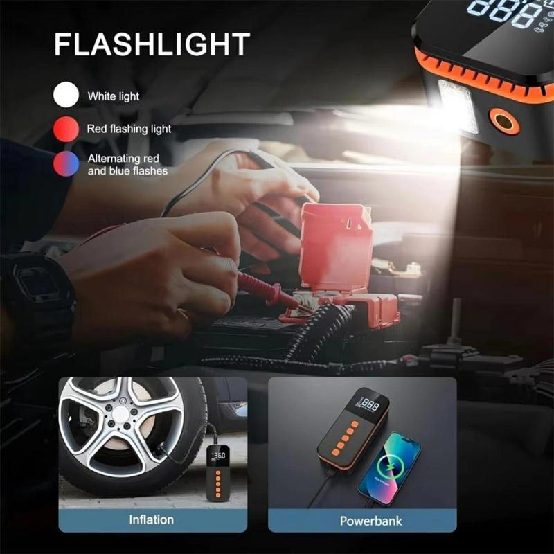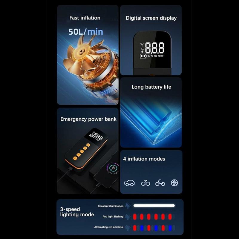 - Noodhulp langs de weg: Banden snel oppompen als je gestrand bent.