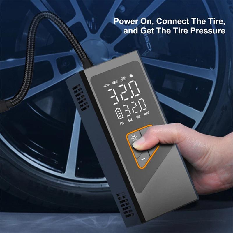 De Wireless Tire Inflator is meer dan alleen een pomp - het is een compacte noodhulp tool die banden snel oppompt, verdubbelt als een powerbank, en je weg verlicht in het donker. Met zijn slimme digitale bediening en 6000mAh batterij, is het je alles-in-één metgezel langs de weg.