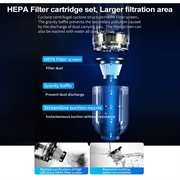 - Sterke zuigkracht - 6000Pa zuigkracht met een 42000rpm motor voor efficiënt schoonmaken.