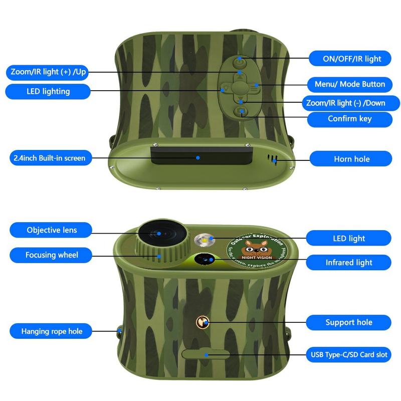 DT15 2.5K digitale nachtkijker met camera voor kinderen - 48MP foto's, 8x digitale + 4x optische zoom, 2,4" IPS-scherm, 850 nm IR (7 niveaus), USB-C, 2200mAh batterij