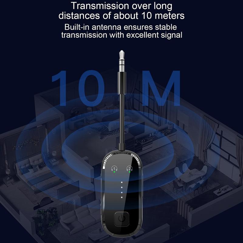 De ingebouwde 250 mAh-batterij zorgt voor een lange gebruiksduur, terwijl het opladen via Type-C het opladen eenvoudig en modern houdt. Deze 2-in-1 Bluetooth-audioadapter is compact en gemakkelijk mee te nemen en is ideaal voor home entertainment, reizen, auto-audio, gebruik op kantoor en het upgraden van oudere geluidsapparatuur zonder deze te vervangen.