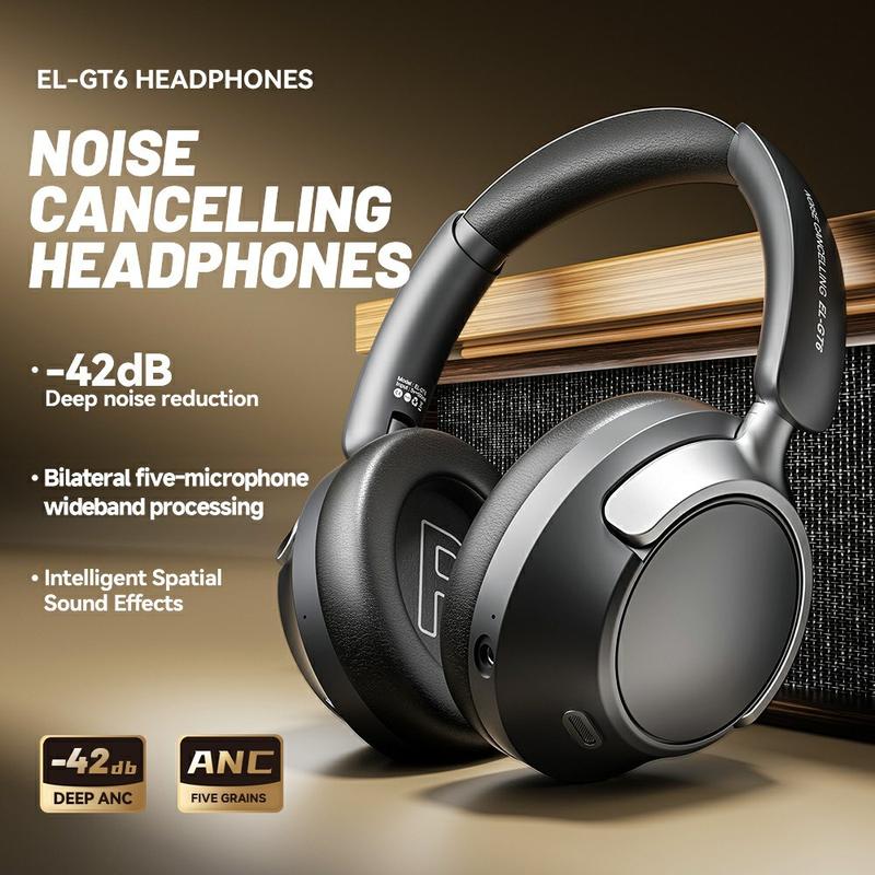 EL-GT6 Over-Ear ANC draadloze hoofdtelefoon / Gaming Headset met Bluetooth 6.0, hifi-geluid, lage latentie