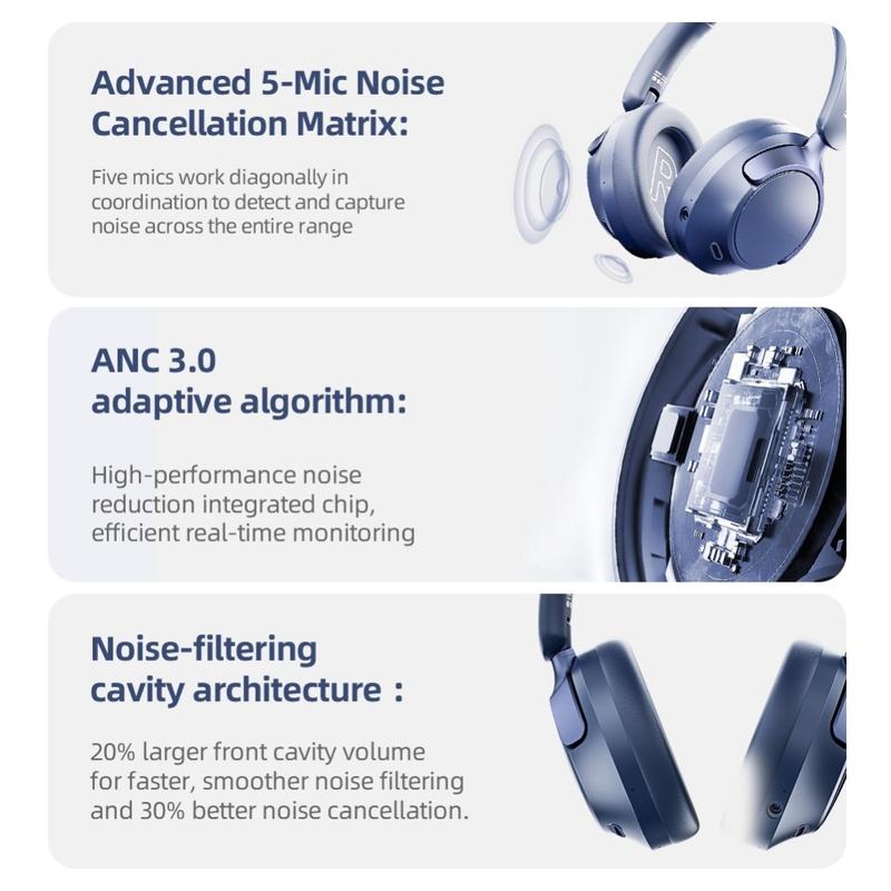 - Geavanceerde ANC 3.0 Technologie - Adaptieve ruisonderdrukking vermindert op intelligente wijze omgevingsgeluid voor volledige onderdompeling.
