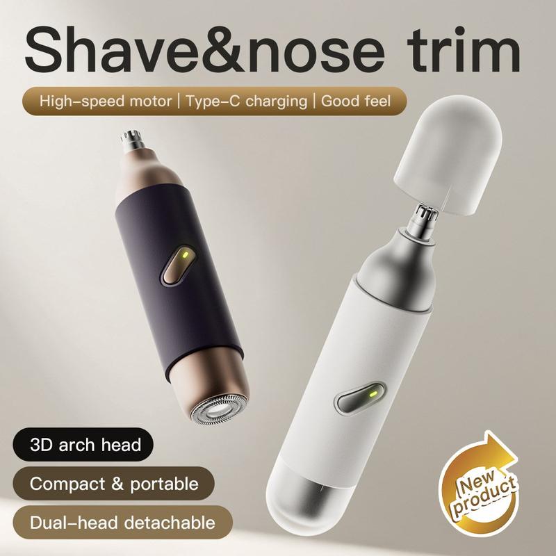 • Elektrische haar- en neustrimmer voor mannen - Draagbaar mini-scheerapparaat met Type-C-oplaadfunctie en twee afwasbare opzetkoppen