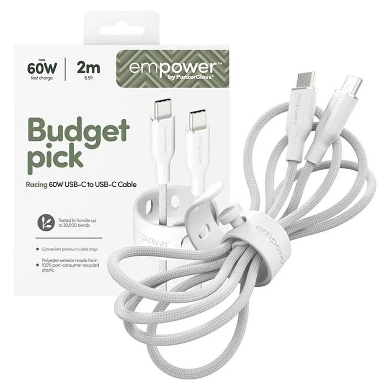 De Empower by PanzerGlass Racing USB-C naar USB-C-kabel is ontworpen voor snelheid en duurzaamheid en ondersteunt snel opladen met 60W voor een breed scala aan USB-C-apparaten. Het ultrazachte, knoopvrije ontwerp maakt dagelijks gebruik moeiteloos, terwijl gerecyclede materialen een duurzaam tintje geven aan deze premium kabel.