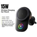 Essager 15W magnetische draadloze oplader/autohouder met koelventilator, RGB-verlichting en bevestiging voor ventilatieopening - compatibel met MagSafe