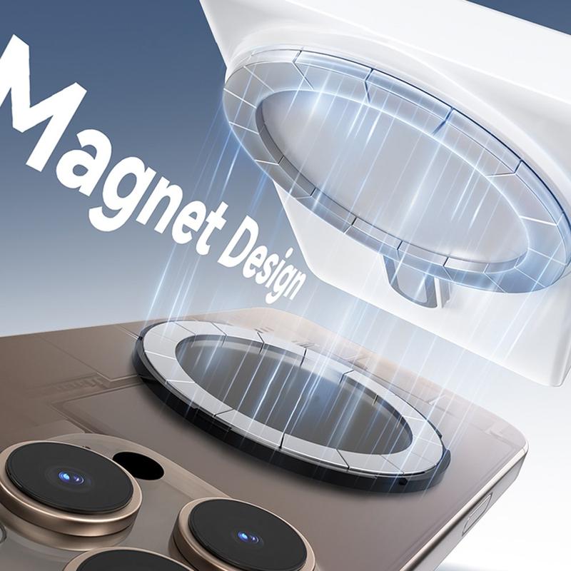 De ingebouwde magnetische bevestiging zorgt voor een snelle en veilige bevestiging aan je telefoon met behulp van de meegeleverde metalen schijf. Perfect voor opnamen uit de hand, statieven, gimbals of tafelopstellingen.