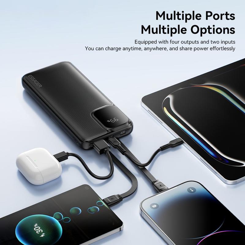 De ESSAGER digitale powerbank combineert sterke oplaadprestaties, dubbele ingebouwde kabels en een duidelijk LED-percentage display in een compact, betrouwbaar ontwerp - perfect voor gebruikers die een alles-in-een oplossing willen zonder extra's mee te nemen.