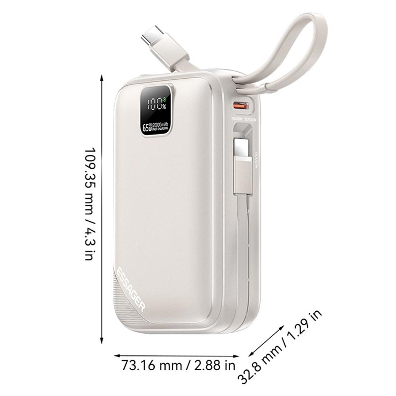 De ESSAGER PD 65W powerbank combineert snel opladen op laptopniveau, dubbele ingebouwde kabels, hoge capaciteit en slimme LED-bewaking, waardoor het de ultieme alles-in-één oplaadoplossing is voor op reis, op het werk en voor dagelijks gebruik.
