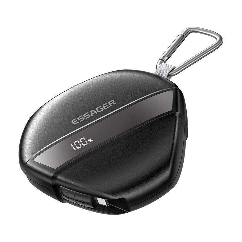 Essager Snel Opladen Power Bank met 70cm Intrekbare Kabel & Karabijnhaak - 10000mAh