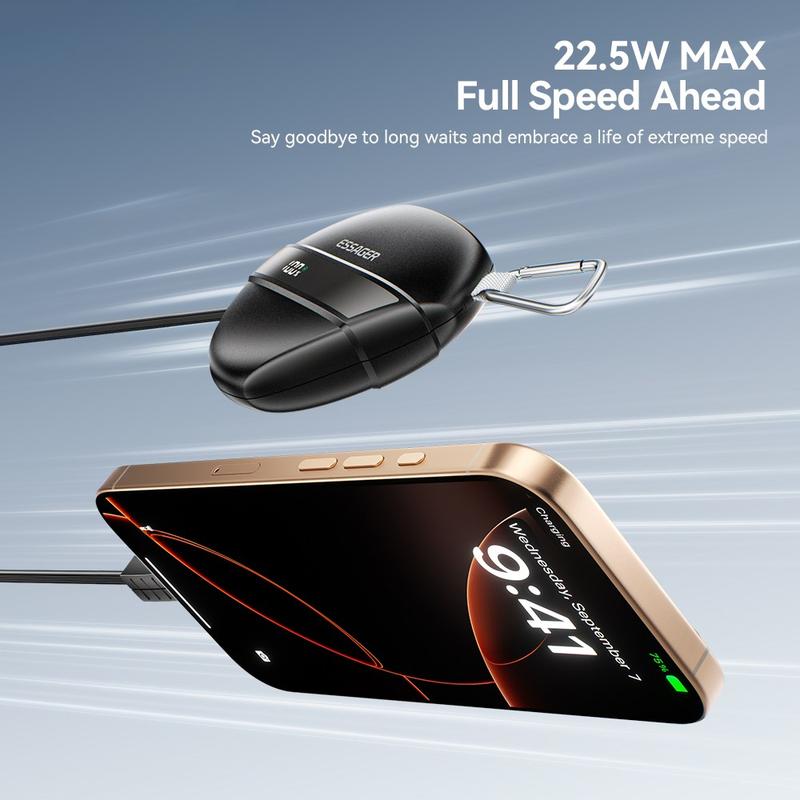 De ESSAGER 22.5W snel opladen powerbank biedt een hoge snelheid opladen, ingebouwde kabel gemak, duurzame constructie, en reis-vriendelijk ontwerp - waardoor het een geweldige metgezel voor dagelijks gebruik, woon-werkverkeer, en outdoor activiteiten.