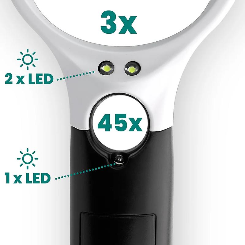 - Dubbele vergroting - Grote 3× lens voor alledaagse taken en krachtige 45× mini-lens voor gedetailleerde inspectie.