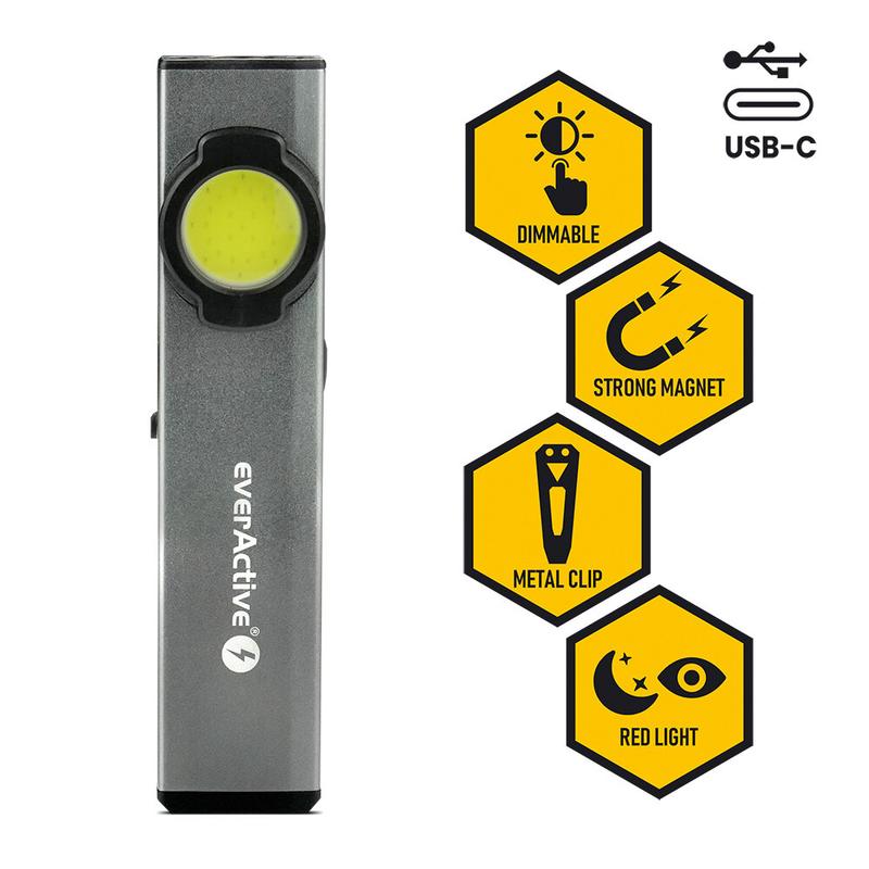 EverActive WL-250R Oplaadbare LED Werkplaatslamp - 300 Lumen, 4 Modi, Magnetische Voet & Clip