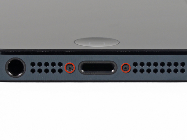 Verwijder de twee 3,6 mm Pentalobe schroeven naast de Lightning connector.