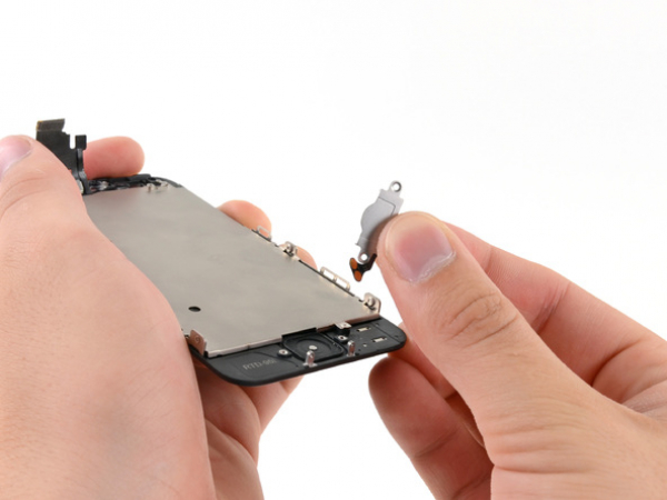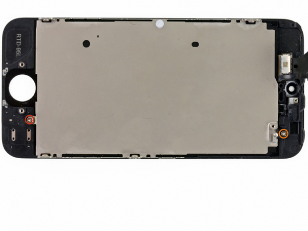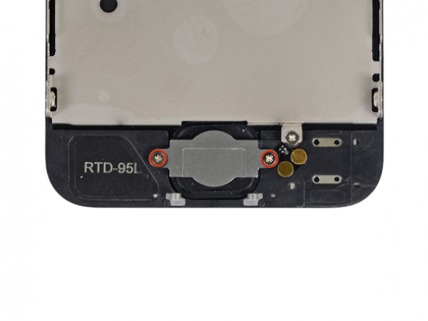 Verwijder de twee 1,3 mm Phillips schroeven waarmee de home-knop beugel aan het beeldscherm vast zit.