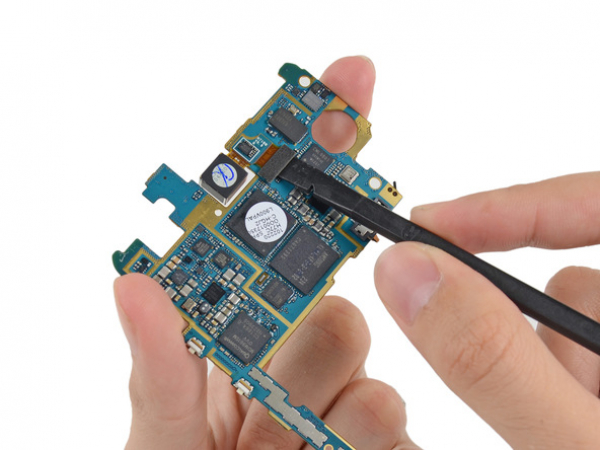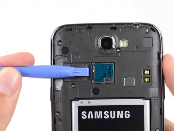 Als er een SD-kaart in de telefoon zit, maak gebruik van het platte uiteinde van een spudger of uw nagel, om de microSD-kaart iets dieper in de sleuf te duwen totdat u een klik hoort.