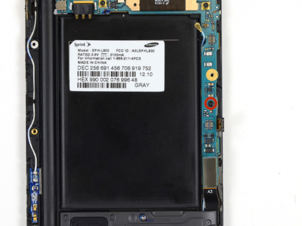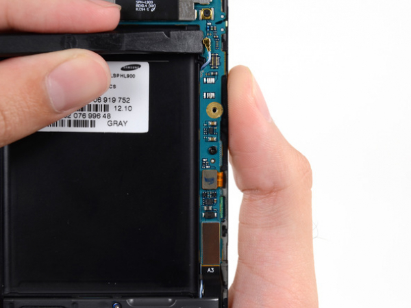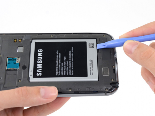 Plaats een plastic opener, of uw vinger, in de uitsparing van het batterijvak en til de batterij omhoog.