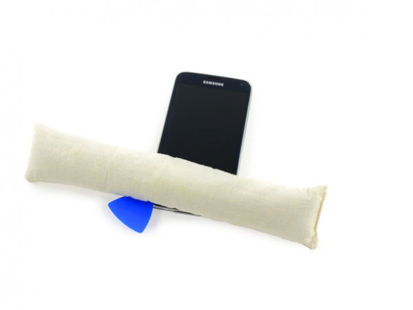 Verwarm de iOpener, en herhaal de procedure voor de rechterkant van de telefoon.