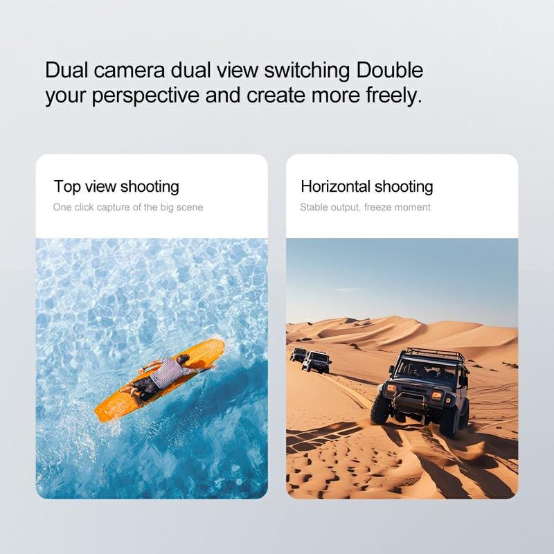 - De verstelbare lenshoek van 90° helpt bij het gemakkelijker vastleggen van verschillende perspectieven tijdens het vliegen en zweven.