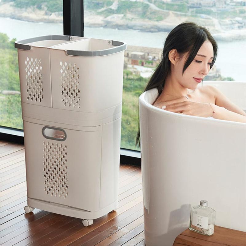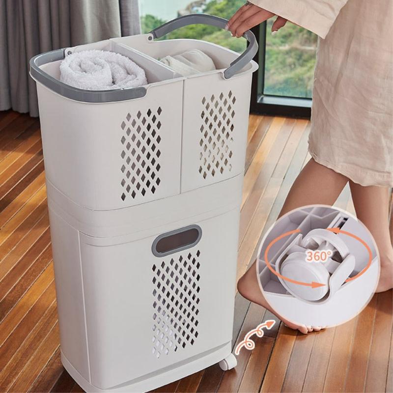 Het dubbellaagse ontwerp maakt het gemakkelijk om kleding te scheiden en te sorteren en helpt wasdagen te stroomlijnen. Sorteer licht en donker, handdoeken en kleding, of schone en gebruikte items - alles in één compacte eenheid.