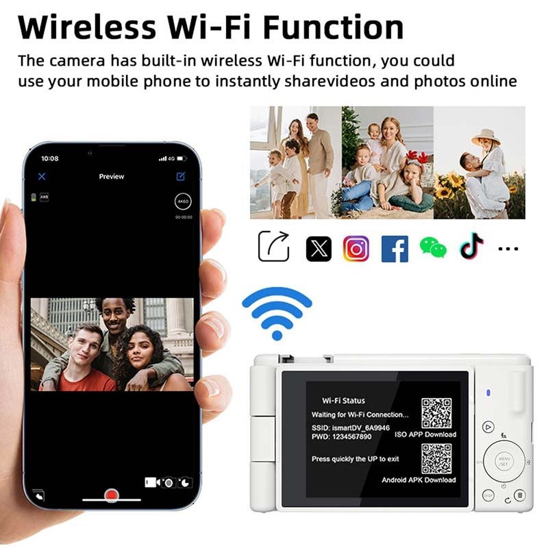 De FC003W digitale camera is ontworpen voor gebruikers die krachtige foto- en videomogelijkheden willen in een compact en gebruiksvriendelijk apparaat. Met ondersteuning voor 5K video-opname en fotografie in hoge resolutie is deze camera ideaal voor alledaagse opnamen, vloggen, reizen en creatieve projecten.