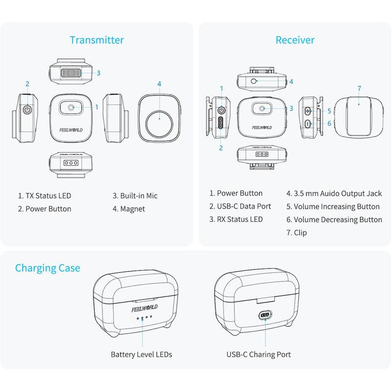 Als u op zoek bent naar een draadloos microfoonsysteem met 2 zenders, brede apparaatcompatibiliteit, een compact draagbaar ontwerp en het praktische gemak van een oplaadcase, dan is de FEELWORLD LM1 een uitstekende keuze. Het biedt u helderder geluid in het dagelijks leven, meer flexibiliteit bij het opnemen en een professionelere geluidsopstelling voor het creëren van content.