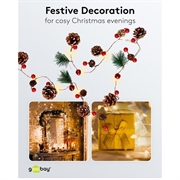 Deze sprookjesverlichting combineert natuurlijke decoratieve elementen met warme LED-verlichting om een tijdloze seizoenslook te creëren. De echte dennenappels en feestelijke bessen voegen textuur en authenticiteit toe, terwijl de timer zorgt voor moeiteloos dagelijks gebruik. Batterijvoeding geeft je volledige vrijheid bij het plaatsen, en de zilveren draad kan worden gevormd rond elke decorstijl. Met zijn lage energieverbruik en lange levensduur is dit een duurzame decoratieve verlichtingsoplossing die je elk jaar opnieuw kunt gebruiken.