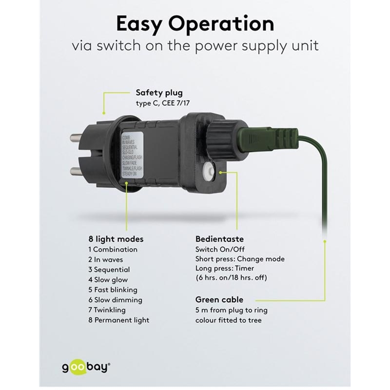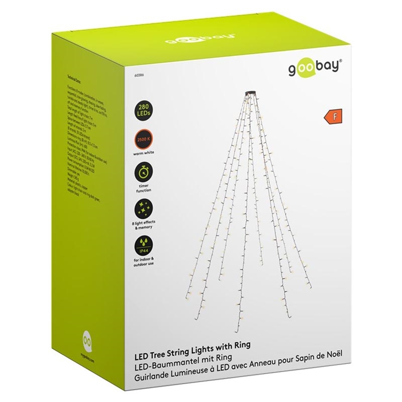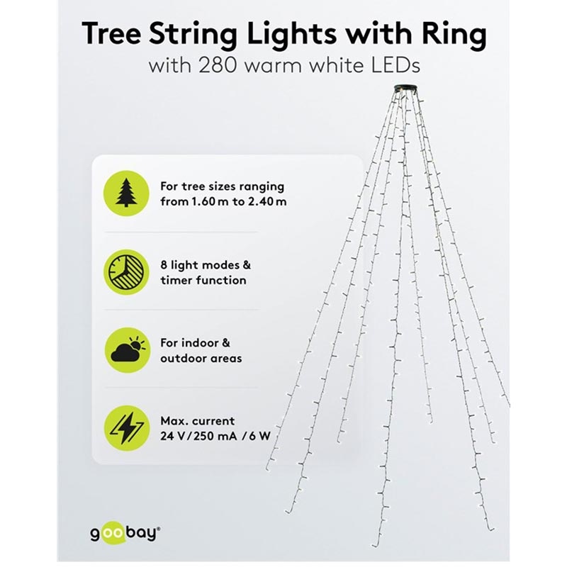 Goobay 280-LED Boom lichtsnoer met ophangring - 8x2m, Timer, Geheugen, 8 Modi, Warm wit 2500 K, Binnen / Buiten (IP44)