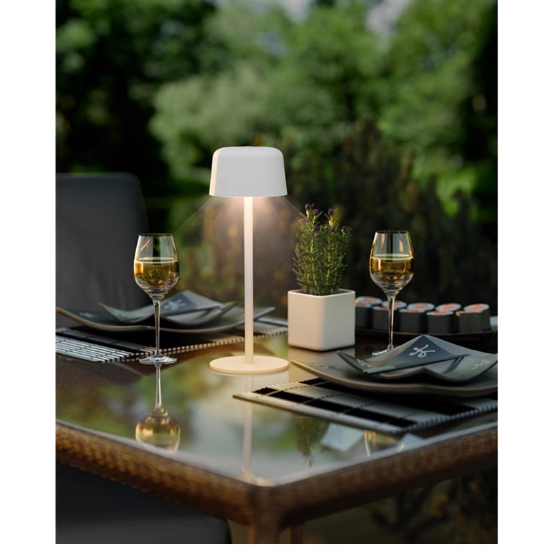 Als u een tafellamp wilt die er premium uitziet en overal werkt, voldoet dit model aan alle eisen: snoerloze vrijheid, eenvoudige dimfunctie met aanraakbediening, warm 3000 K-licht en een stabiele metalen constructie die gemaakt is om lang mee te gaan. Het is een eenvoudige upgrade voor zowel binnen- als buitengebruik.