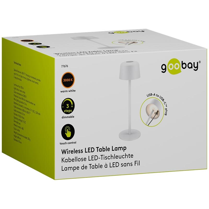 Goobay draadloze LED-tafellamp - maat S (25 cm), aanraakbediening, warm wit 3000 K, 150 lm, oplaadbaar via USB-C, IP44
