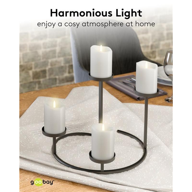 Voeg klassieke kaarslicht charme toe aan elke ruimte met deze set van 4 Goobay LED kaarsen van echte was. Gemaakt van echte was en voorzien van 3D vlamkegels, creëren ze een prachtig realistisch flikkerend effect dat de warmte van traditionele kaarsen uitstraalt - zonder roet, hitte of brandgevaar. De warmwitte gloed van 2700 K zorgt voor een gezellige sfeer die het hele jaar door past, van intieme diners tot feestelijke kerstvieringen. Met een automatische timer van 6 uur en een werking op batterijen bieden deze kaarsen moeiteloze sfeer op plaatsen waar echte vlammen onveilig of niet toegestaan zijn.